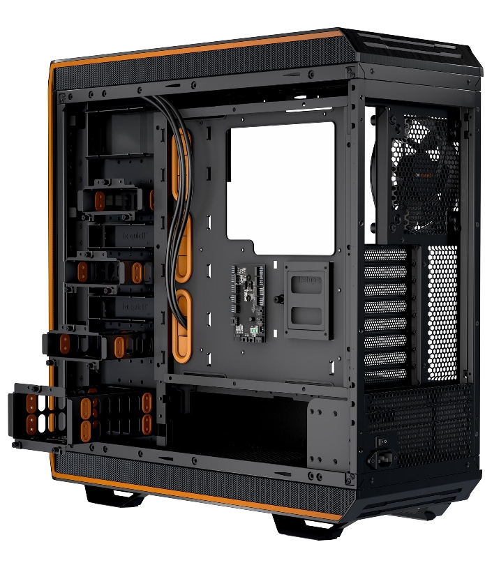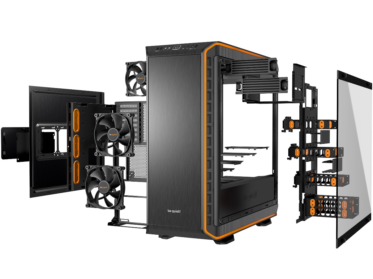 La marca be quiet! no es tan conocida mundialmente como Corsair o Cooler Master, pero tiene un importante prestigio en lo que son fuentes de poder, coolers y gabinetes gamer. En este caso, el modelo Dark Base Pro 900 es una caja tipo torre, con todo lo necesario para cualquier PC gamer. Con sus medidas de 57.7 x 24.3 x 58.6 cm. y un peso de 14.39 kg., esta armadura se caracteriza principalmente por presentar un diseño sobrio pero elegante, con buena compatibilidad de espacios y siendo modular en su interior. Con respecto a las bahías, tiene lugar para 10 de 2.5» y 5 de 3.5», una cantidad impresionante.