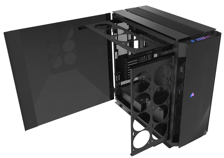 Por su parte, el Corsair 1000D tiene un diseño elegante, con gran calidad de materiales y con un atractivo frente de RGB en sus coolers. En cuanto a sus puertos, cuenta con entrada de audio / micrófono, USB 3.1, tipo C y USB 3.0.
